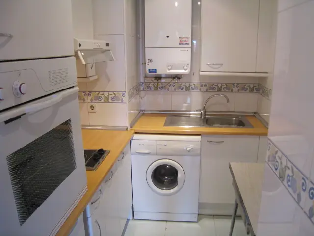 Piso de 1 dormitorio, francamente luminoso, totalmente exterior con un balcón corrido al Paseo Imperial. Tiene un dormitorio y un baño. Dispone de un armario empotrado grande en el dormotirio. La cocina está amueblada y con electrodomésticos. Calefacción y agua caliente individual por caldera de gas natural. El precio incluye un trastero.