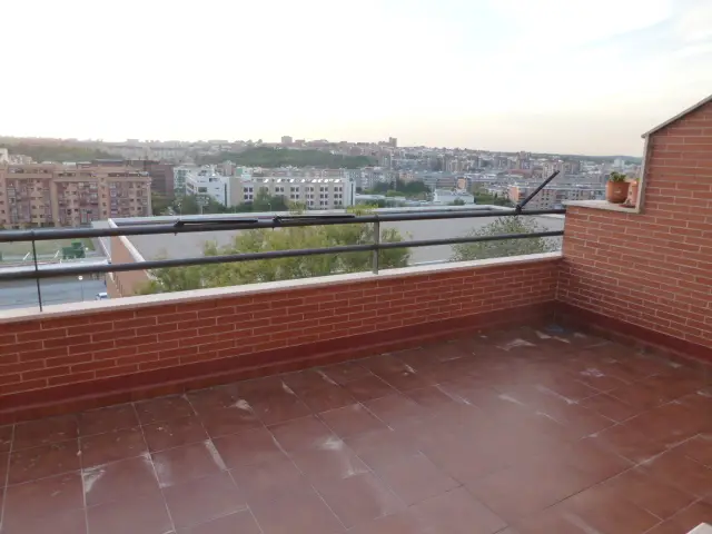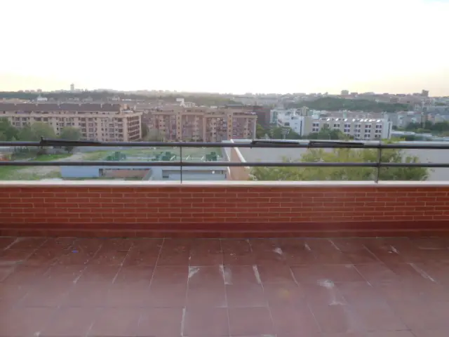 Atico muy luminoso de dos dormitorios. Cercano a la M-30 y al centro de Madrid. Exterior. Con calefacción y agua caliente individual por caldera de gas natural. Cocina amueblada con electrodomésticos. Plaza de garaje incluida en el precio.